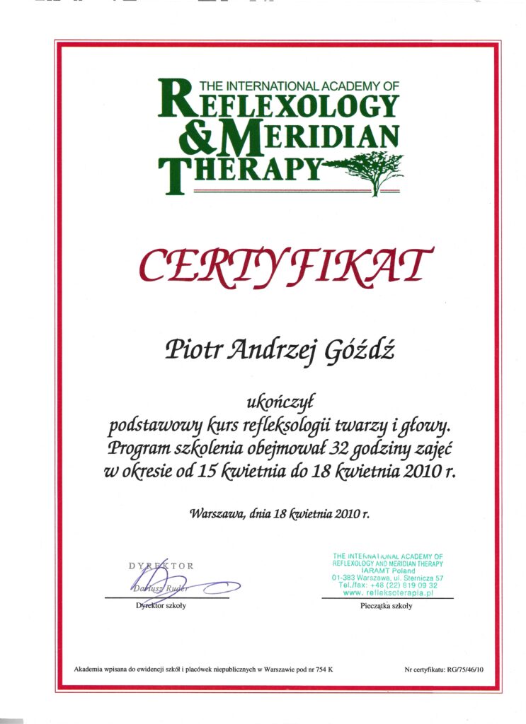 - Reflexology & Meridian Therary ( Warszawa 2010 ).
