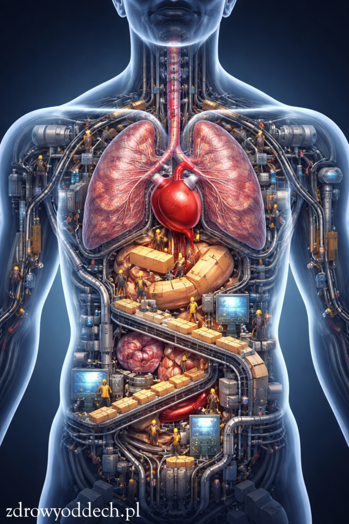 Dlatego oddech nie jest dodatkiem do zdrowia. Nie jest „techniką relaksacyjną”. Nie jest modą. Jest fundamentem, na którym opiera się cała fabryka.